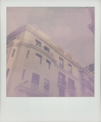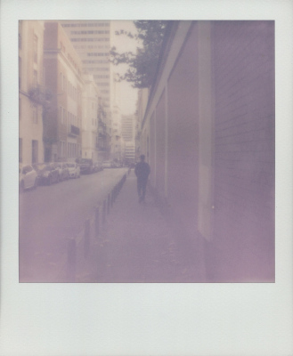 Walk / Madrid (2024, Madrid). A series of 16 Polaroids.In this series, the act of walking is mediated through the temporally unstable medium of expired instant film. Chemical alterations, color shifts, and image loss become expressions of memory that resist controlled access. Memory manifests here as a materially transformed imprint of a past moment.