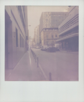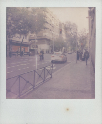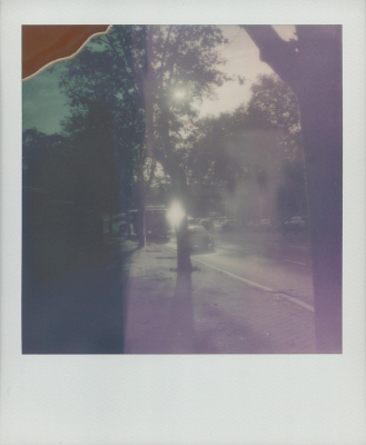 Walk / Madrid (2024, Madrid).In this series of 16 Polaroids, the act of walking is mediated through the temporally unstable medium of expired instant film. Chemical changes, color shifts, and image loss become expressions of memory that resist direct control. Memory here manifests as a materially transformed imprint of a past moment.